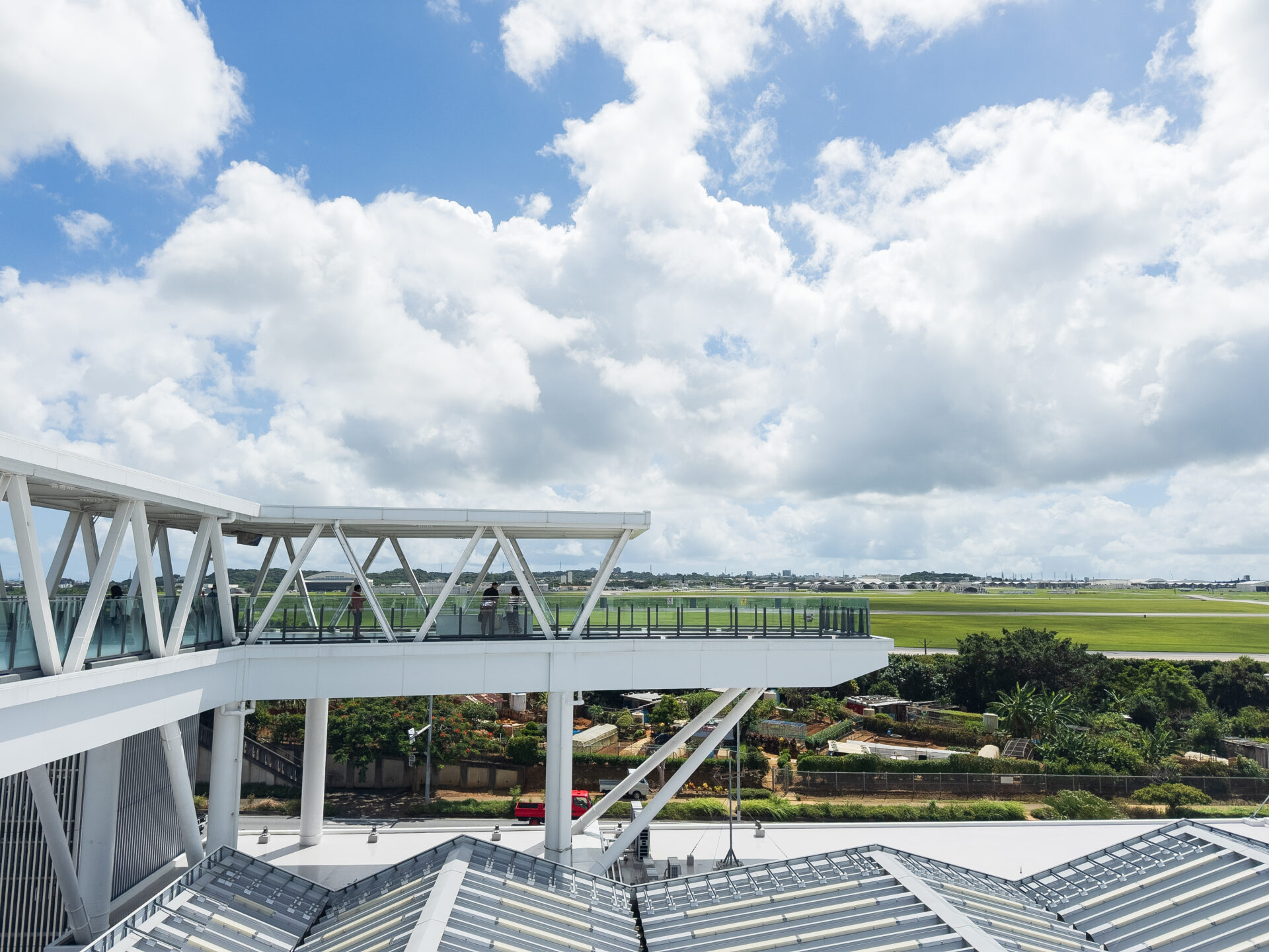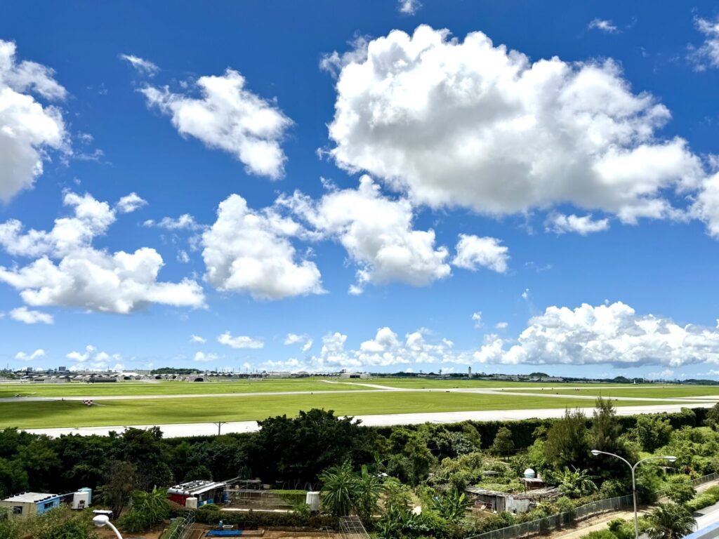 展示室とあわせて立ち寄りたいのが、4階にある展望所です。ここからは広大な嘉手納基地や周辺の街並みを一望できます。