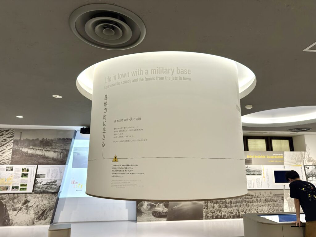 中でも印象に残ったのが、嘉手納基地からの騒音や悪臭を再現した体験型展示です。文字や写真では伝わりにくい「基地のある町のリアル」を、感じることができます。