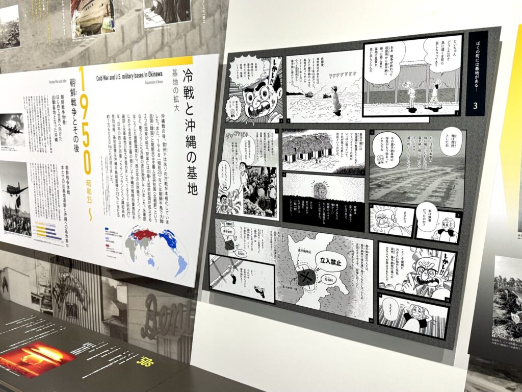 学習展示室は『ぼくの町には基地がある』をテーマに、沖縄戦から戦後の米軍統治、本土復帰、そして現在までをわかりやすく紹介しています。