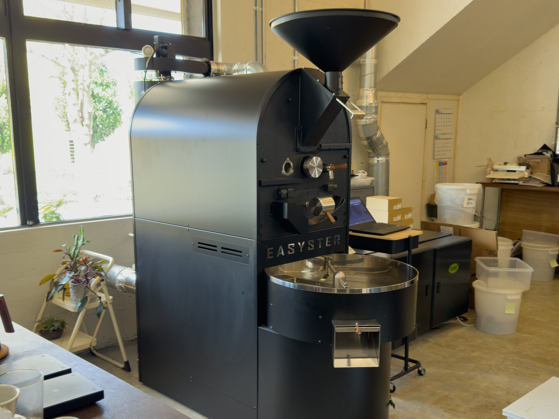 店内でまず目を引くのが、大きな焙煎機の存在。焙煎作業は営業時間外に行っているため、その様子を見ることはできませんが、普段なかなか目にする機会のない焙煎機が置かれていることで、この店ならではの空気が感じられます。どこにいても自然と視線に入りやすく、ロースタリーらしさを印象づけていました。