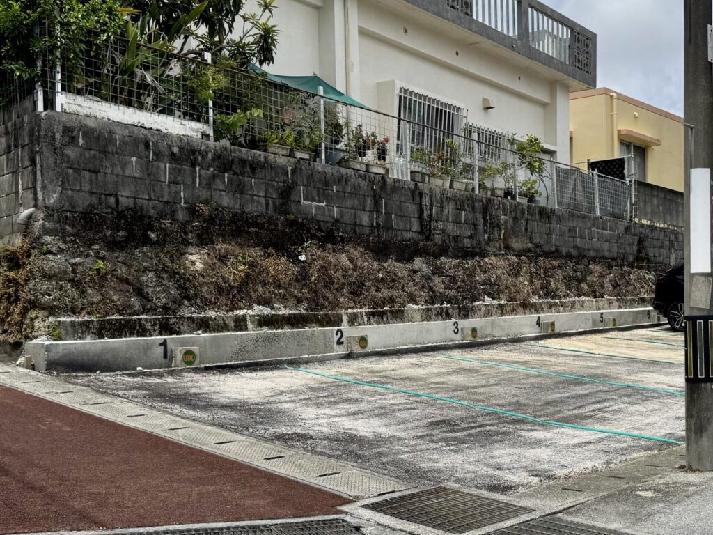 駐車場は、国道から店舗そばの道に入って50mほど進んだ場所に。全部で6台分あり、1番から6番までが店舗専用の駐車スペースとなっています。