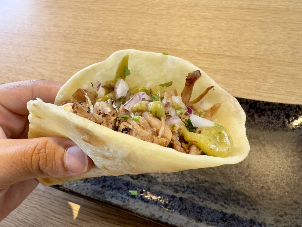 お店で使われるタコスの皮は、店主による手作り。メキシコスタイルの柔らかい皮のタコスは初めてでしたが、一口食べるとトルティーヤのもちっとした食感と具材の相性がバッチリでした。