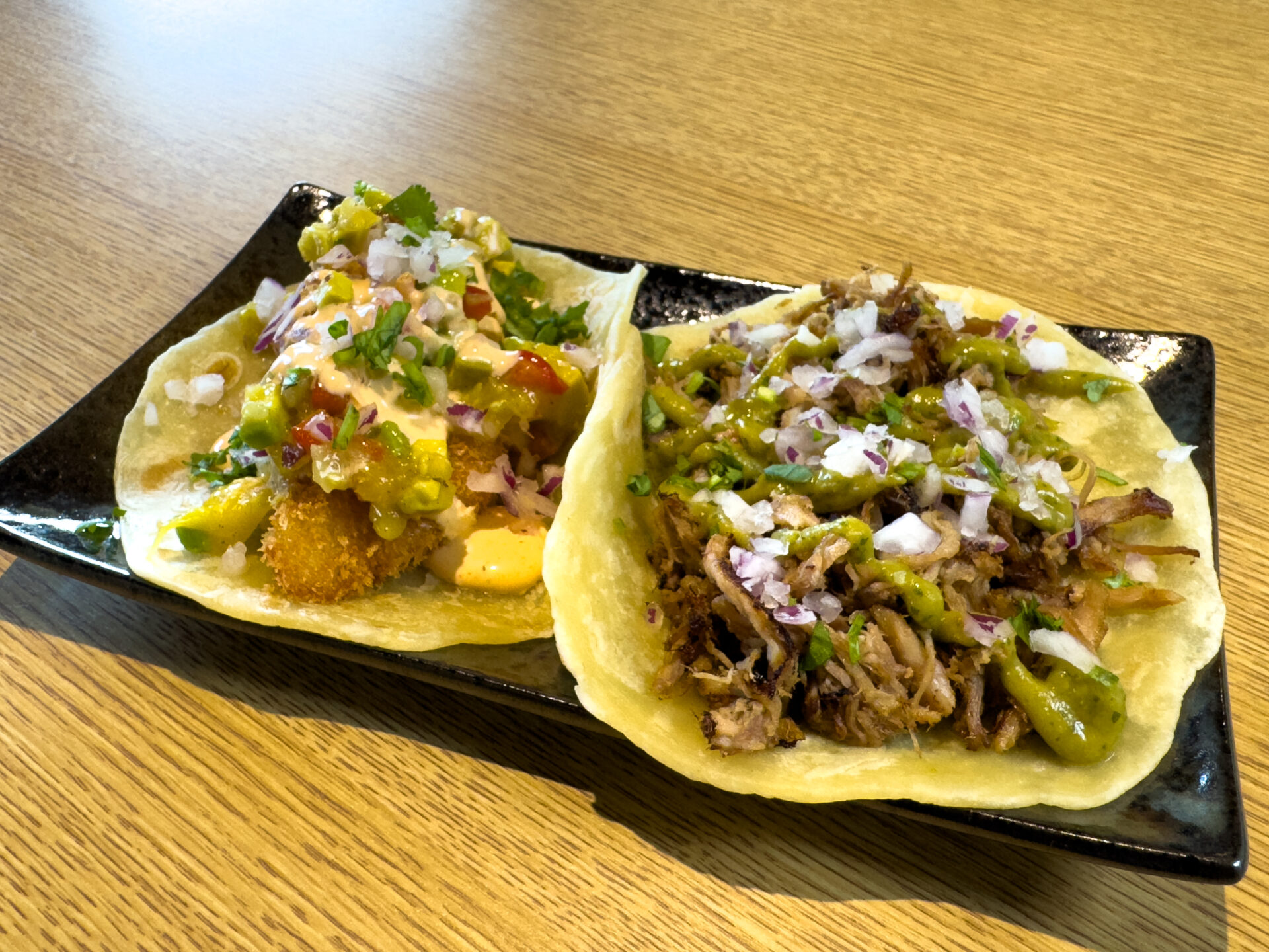 タコスメニューは、豚肉を使った「カルニタス」と、サクッと揚げられた魚を使った「フィッシュタコス」の2種類がありました。どちらか一つには絞れず、2種類ともオーダーしてみました。